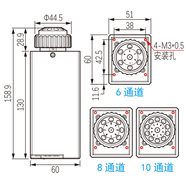 | 接口螺紋(UNF) | 1/4-28 1/4-28 10-32 6-40 6-40 | ||