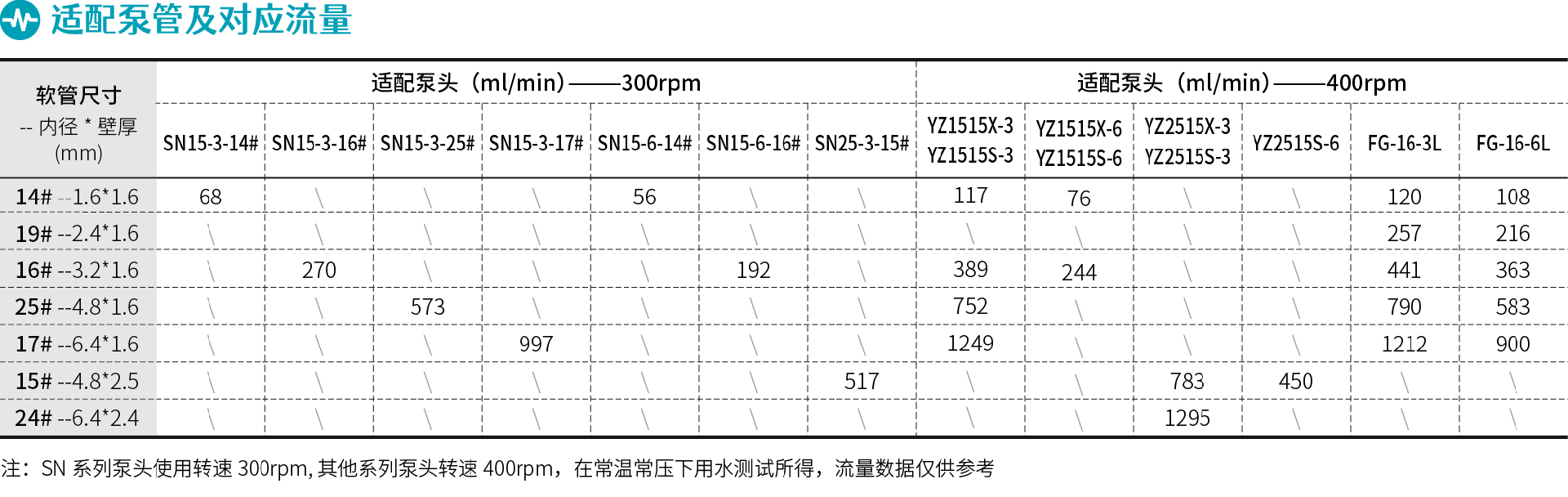 ●轉(zhuǎn)速范圍 / 最大參考流量:≤400rpm / 1295ml/min">
