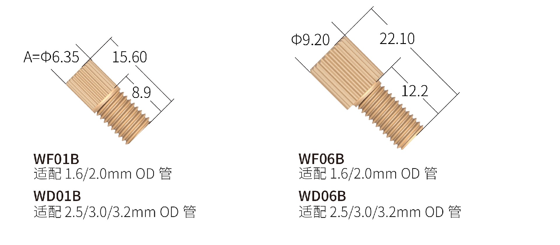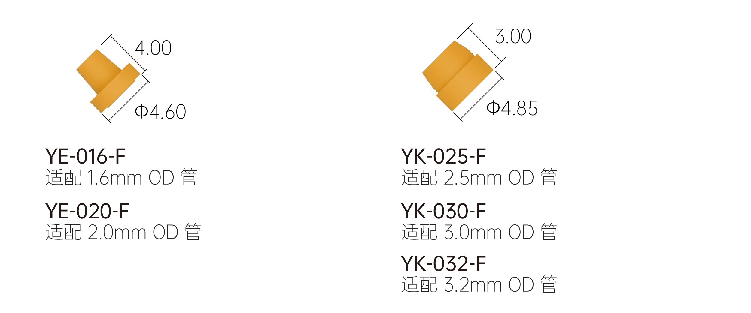 ◆ 可使用外徑1.6/2.0/2.5/3.0/3.2mm五種尺寸的硬管,安裝快速簡易