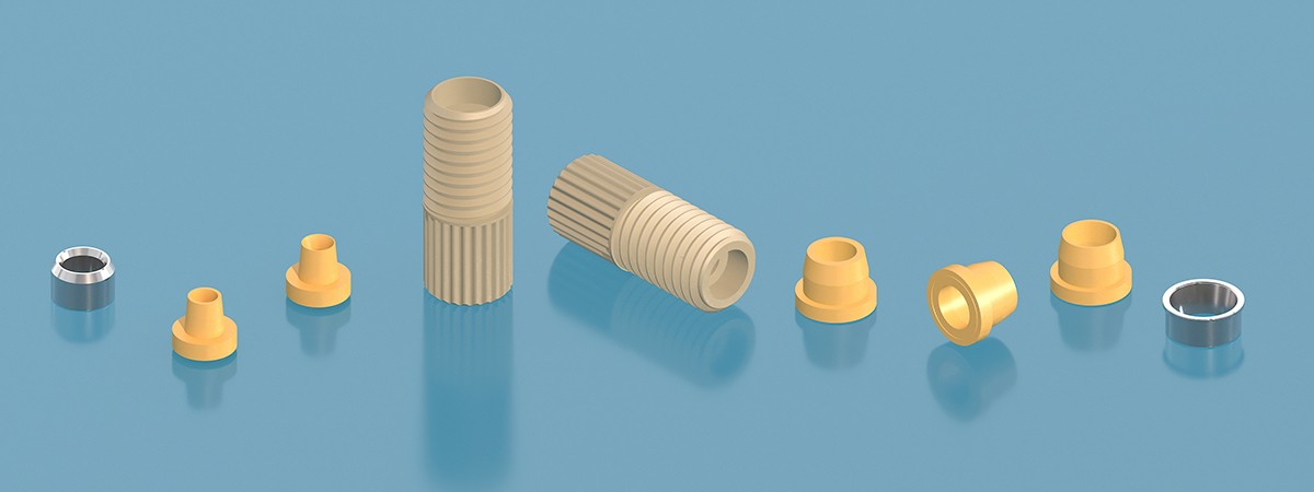 2.依次套入倒錐壓塞、壓套、壓環(huán),手動調(diào)整使壓環(huán)底部與硬管端面齊平,并使壓環(huán)的錐形端與倒錐壓塞螺紋端、壓套相吻合。