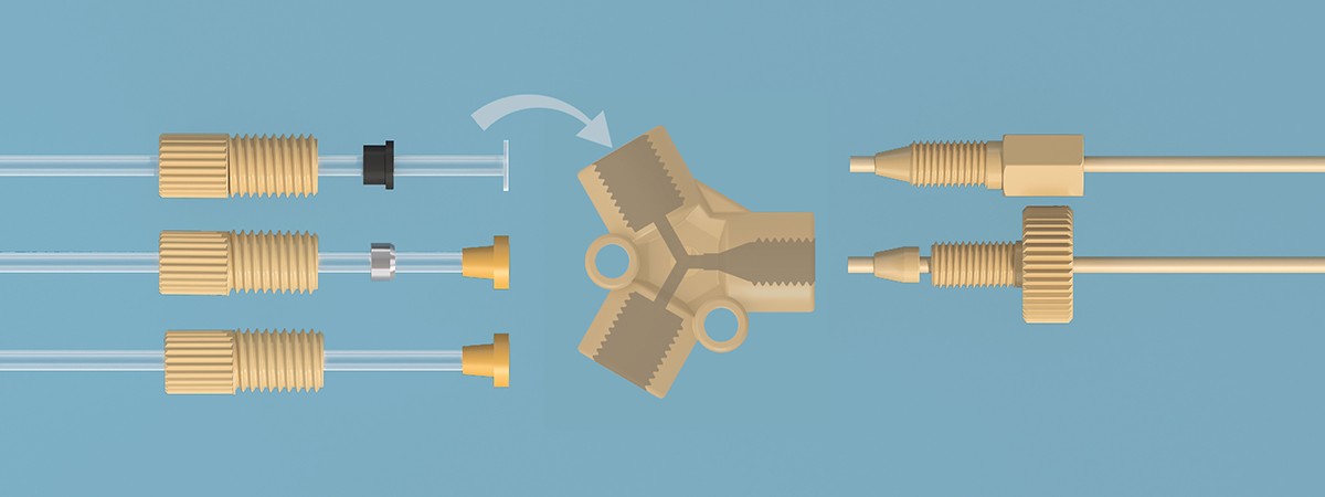 ●特點:設(shè)計用于分流或?qū)蓚€液流匯集在一起;非常適合預(yù)裝配管路; Y型連接的幾何形狀可減少湍流,改善分析結(jié)果">