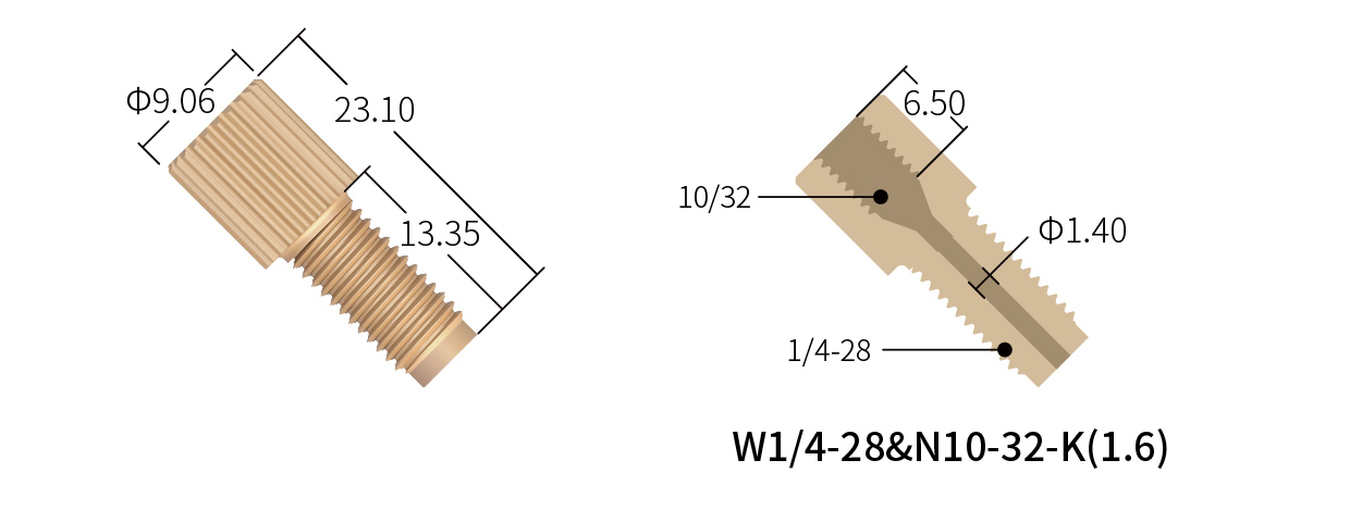 ●適配管路:適用于標準1/4-28UNF平底螺紋接頭或5/16-24UNF平底螺紋接頭