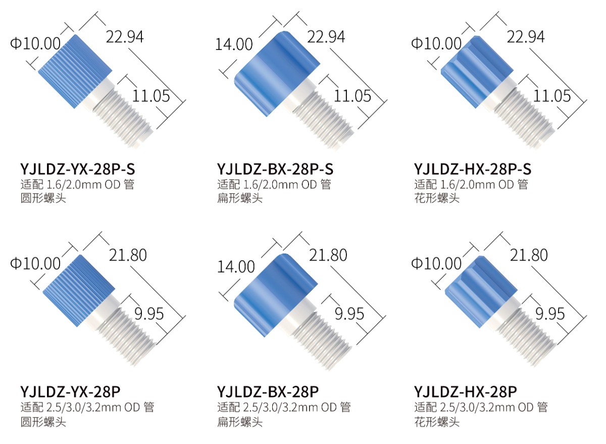 ※ 請選擇正確的壓塞型號,在連接管路時既不會出現(xiàn)扭力不足無法很好密封,也不會出現(xiàn)扭力過大過度擠壓管路的情況
