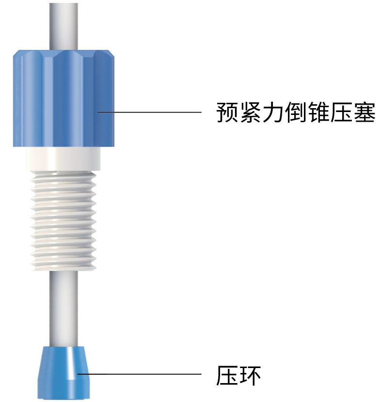 1. 切平硬管端面,依次套上預緊力倒錐壓塞和倒錐壓環(huán),壓環(huán)底部與硬管端面齊平。壓環(huán)的錐形端與壓塞的底部相吻合。