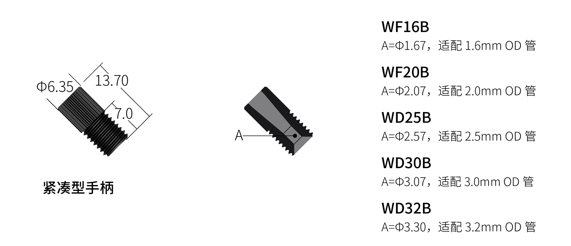 ◆ 可使用外徑1.6/2.0/2.5/3.0/3.2mm五種尺寸的硬管,安裝快速簡易