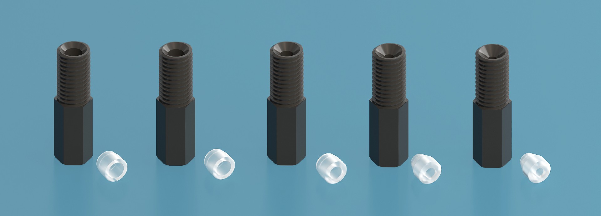 2.依次套入倒錐壓塞、壓環(huán),手動調(diào)整使壓環(huán)底部與硬管端面齊平,并使壓環(huán)的錐形端與倒錐壓塞螺紋端相吻合。