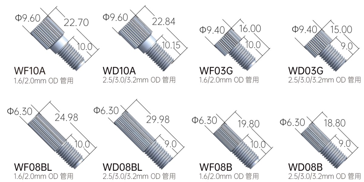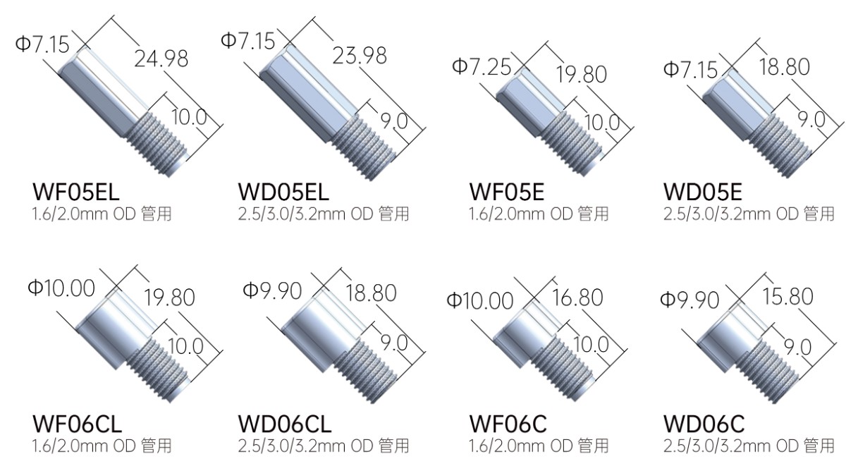 ◆ 可使用外徑1.6/2.0/2.5/3.0/3.2mm五種尺寸的硬管,安裝快速簡(jiǎn)易