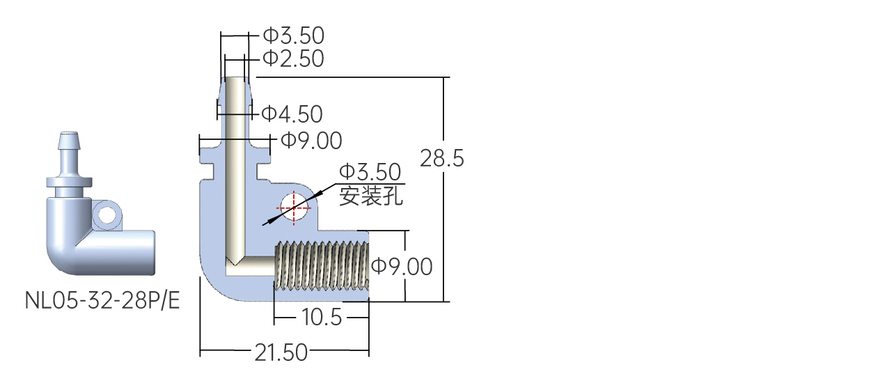 ◆ 適用于標(biāo)準(zhǔn)1/4-28UNF平底螺紋接頭(螺距:0.907mm)