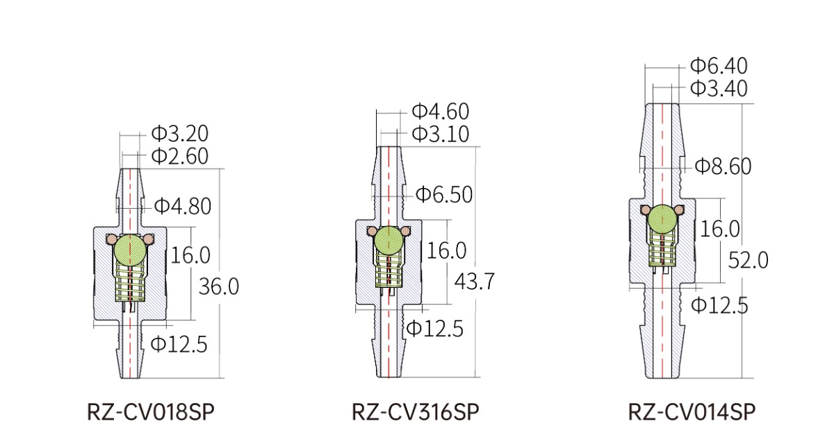 ◆ 隔膜單向閥、鴨嘴單向閥、彈簧單向閥,三種形式可選