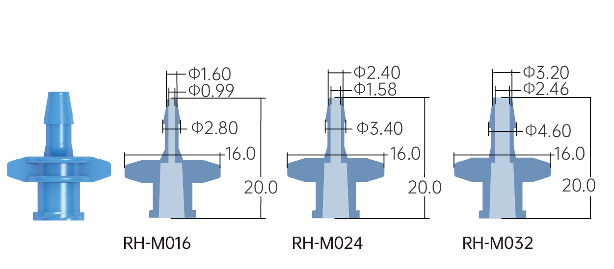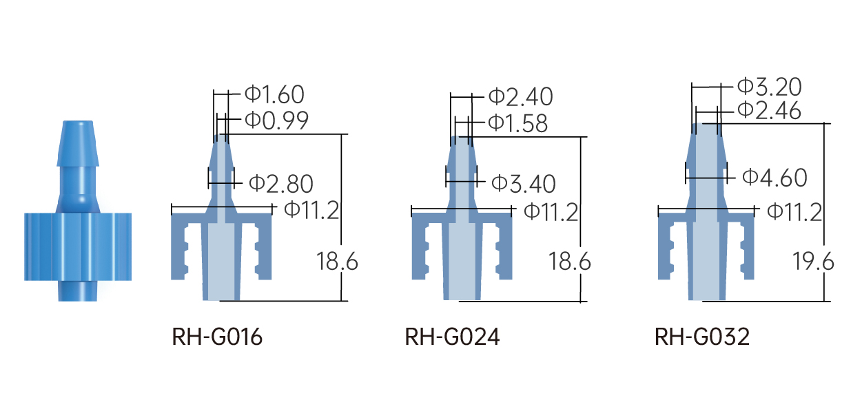 ●適配管路:適用于1.0-6.4mm內(nèi)徑的軟管
