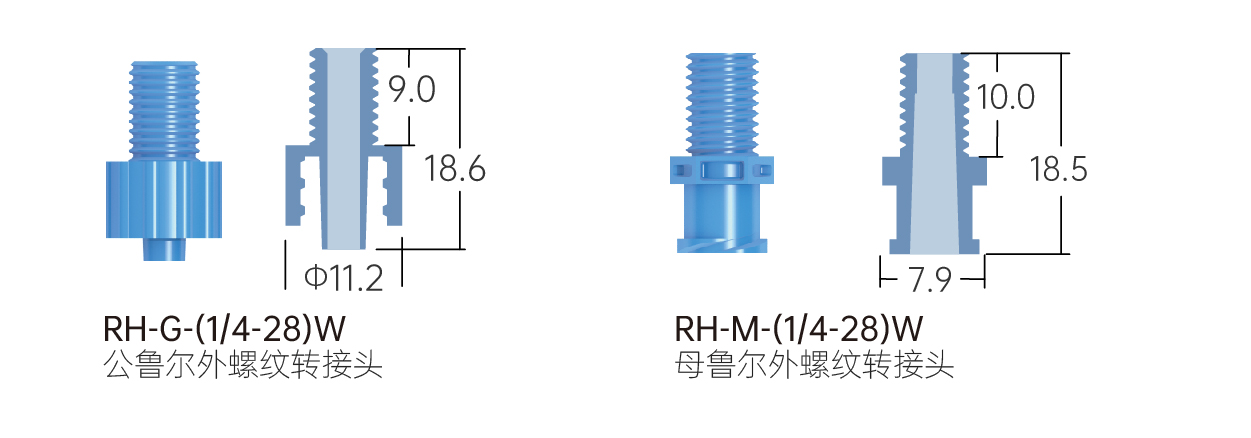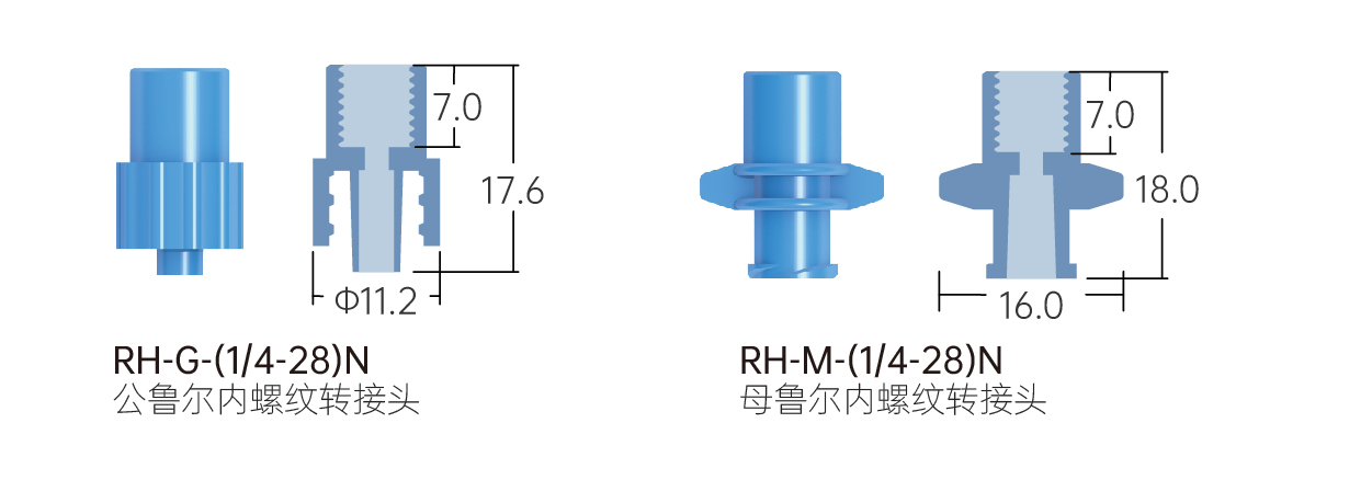 ◆ 魯爾接頭(Luer taper)是一種標(biāo)準(zhǔn)化的微量無滲接頭,通過魯爾內(nèi)旋接頭(公魯爾接頭)與魯爾外旋接頭(母魯爾接頭)部分來連接