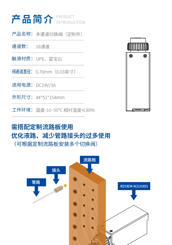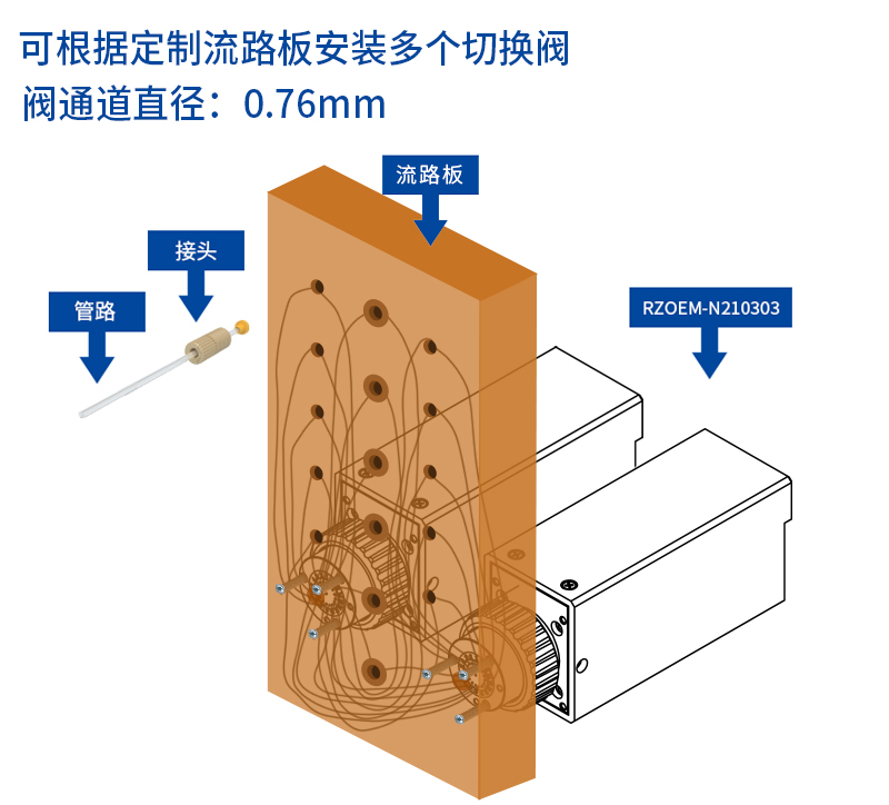 2、流路配置:提供6/8/10/12/16多種通道閥頭,1.0/1.2mm通徑,滿足不同行業(yè)及工況的需求,還可根據(jù)用戶需要定制相對(duì)應(yīng)的閥芯流道,任意組合應(yīng)用以適應(yīng)各種復(fù)雜的流路