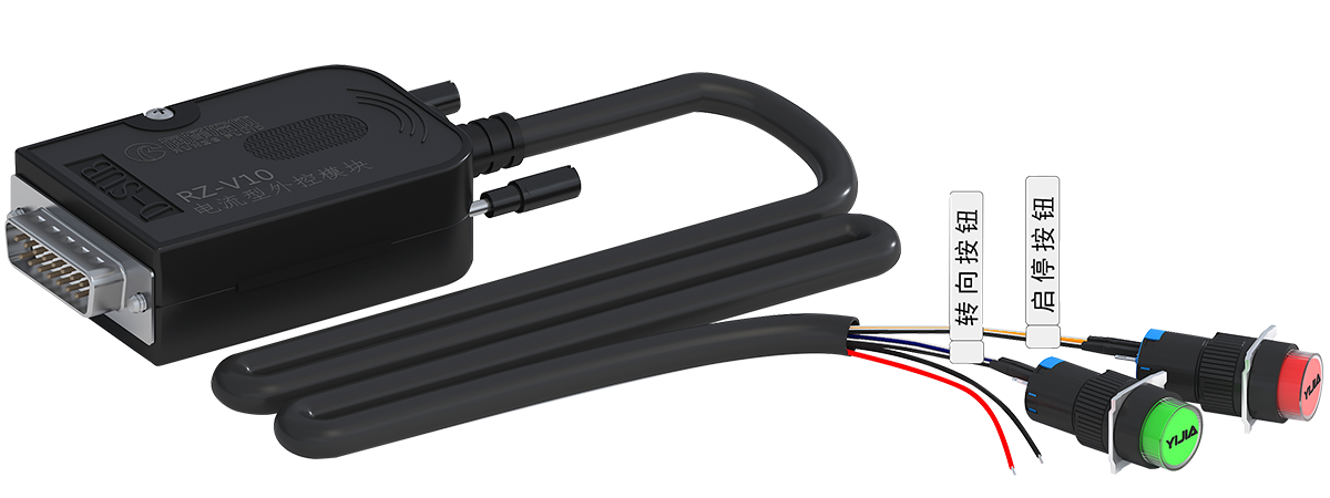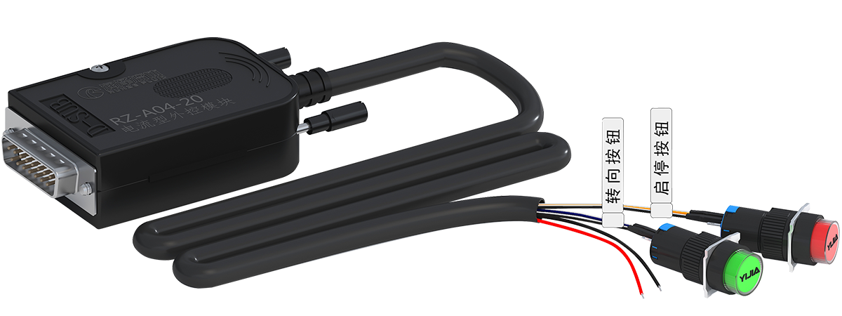 ◆ 綠色轉(zhuǎn)向按鈕、紅色啟停按鈕,黑紅線外接電流 / 電壓信號發(fā)生器