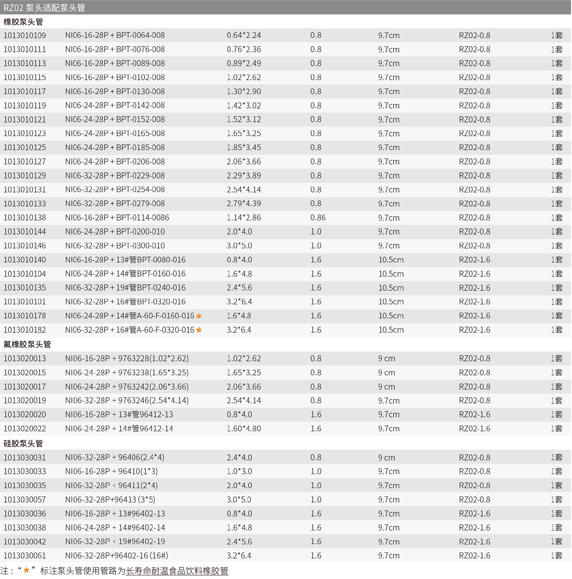 ●管路材質(zhì):橡膠管、氟橡膠管、硅膠管
